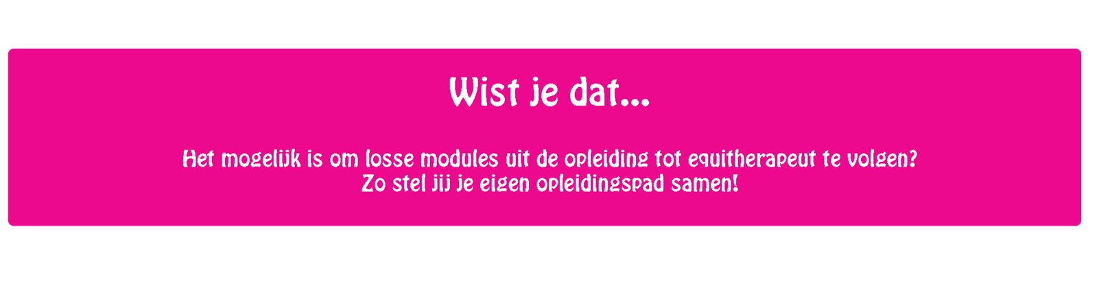 paard mee te nemen naar de lesdagen. De praktijkonderdelen met de paarden vinden buiten plaats. Gelieve hiermee rekening te houden bij